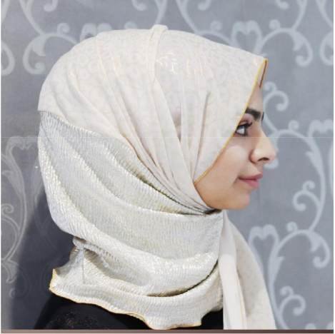 Metalic gold stretch – fused with printed chiffon and draped with a stylish tassel