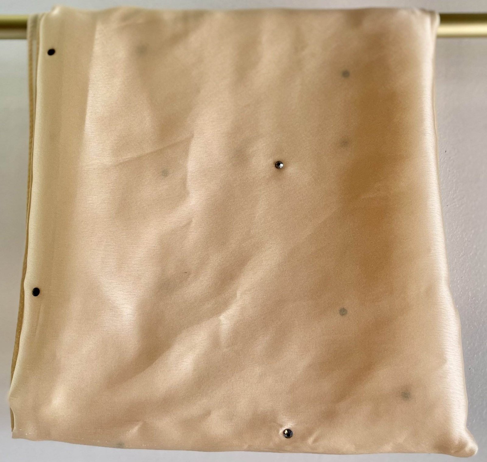 I S I D O R A – H I J A B A peach silk hijab – tapped with diamantés enhancing its pure look.