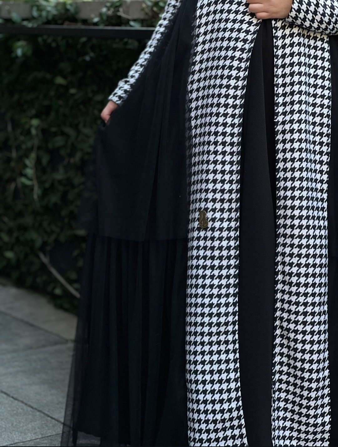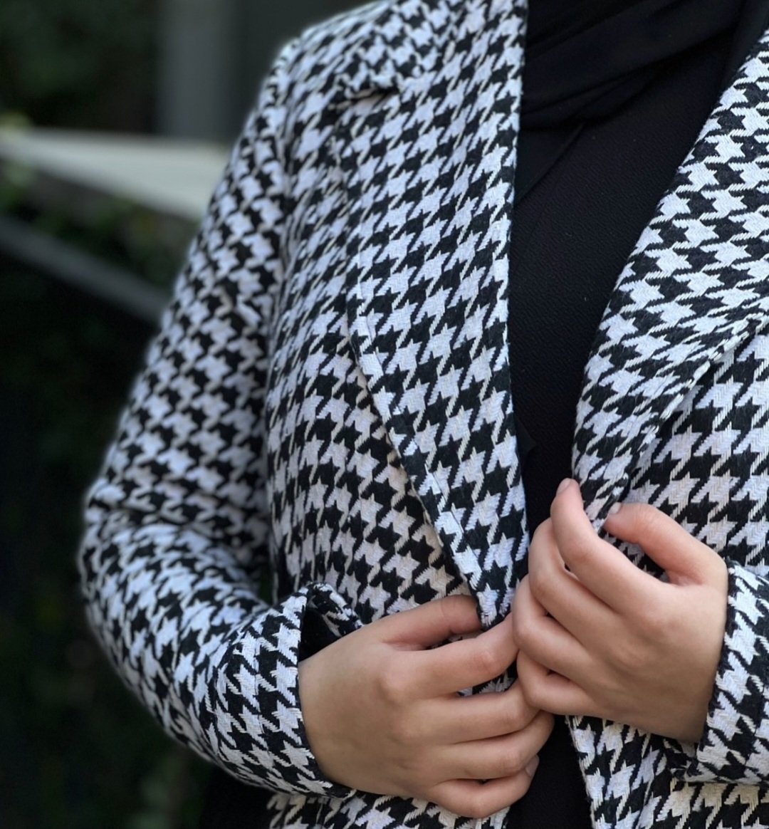 A minimalist structured coat reflecting composed garce and inner stillness by it’s netted detailing.