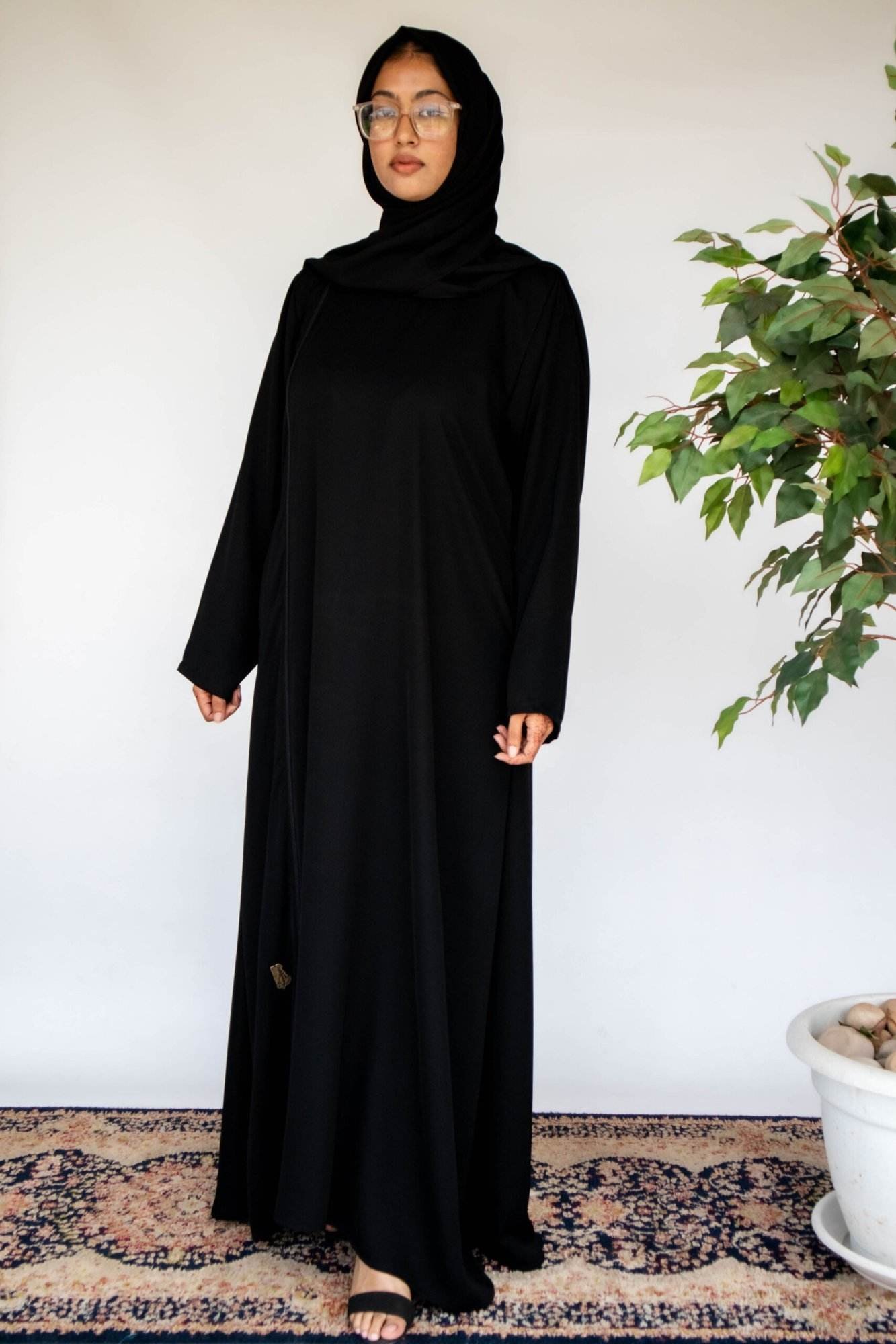 Introducing our timeless everyday abaya, featuring a neat and classical design with a discreet zip closure running down the front. Effortlessly blending style with comfort, this versatile piece is perfect for any occasion, offering a chic and refined look for your daily attire.