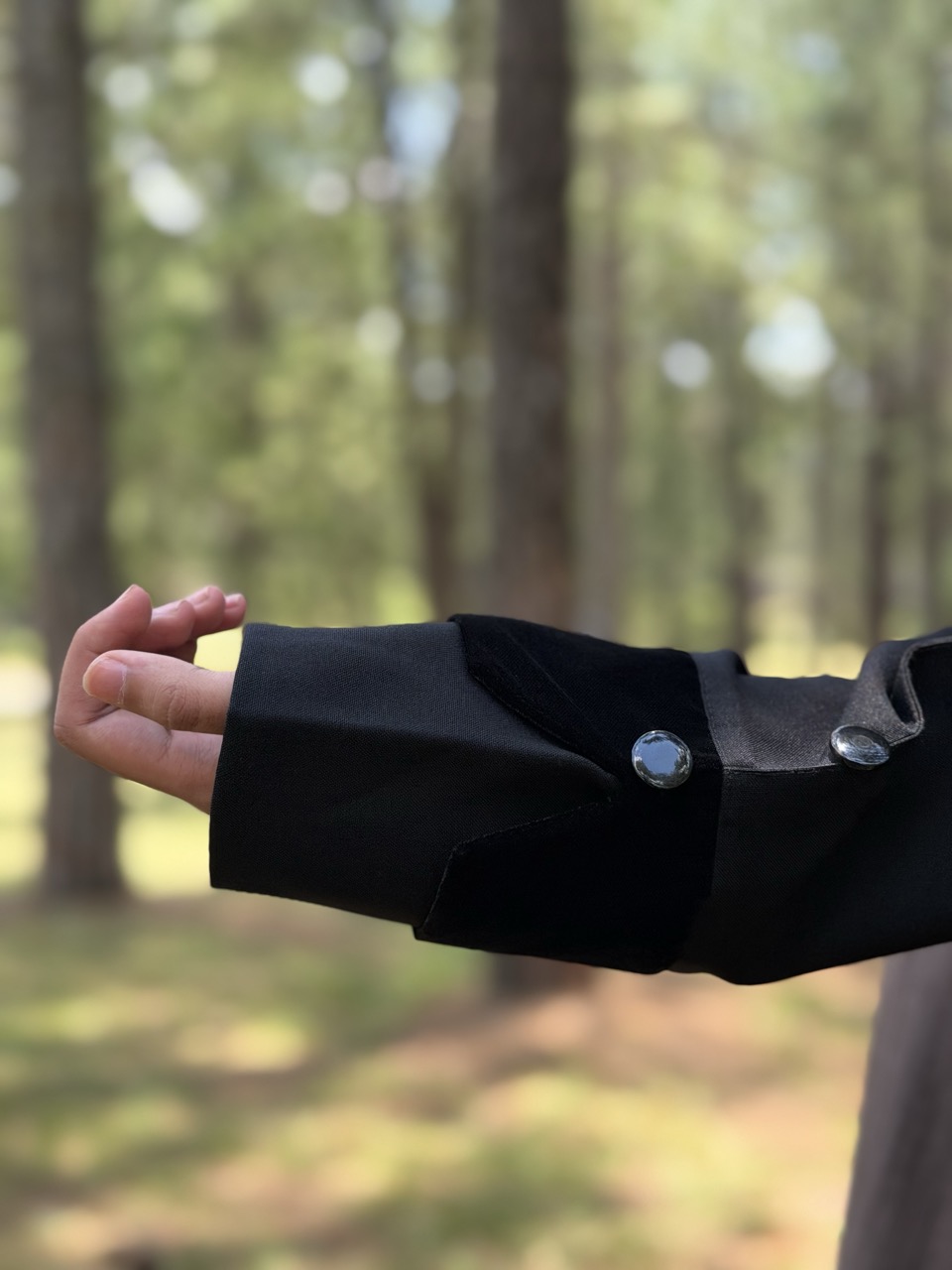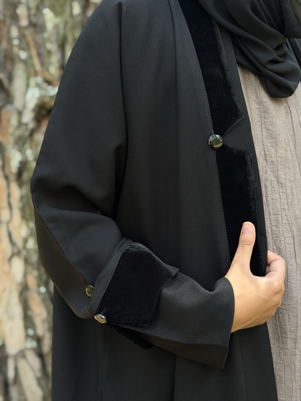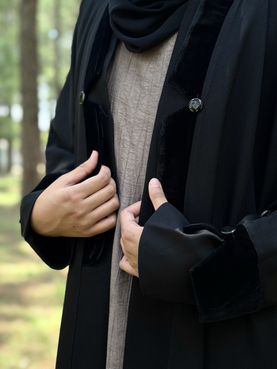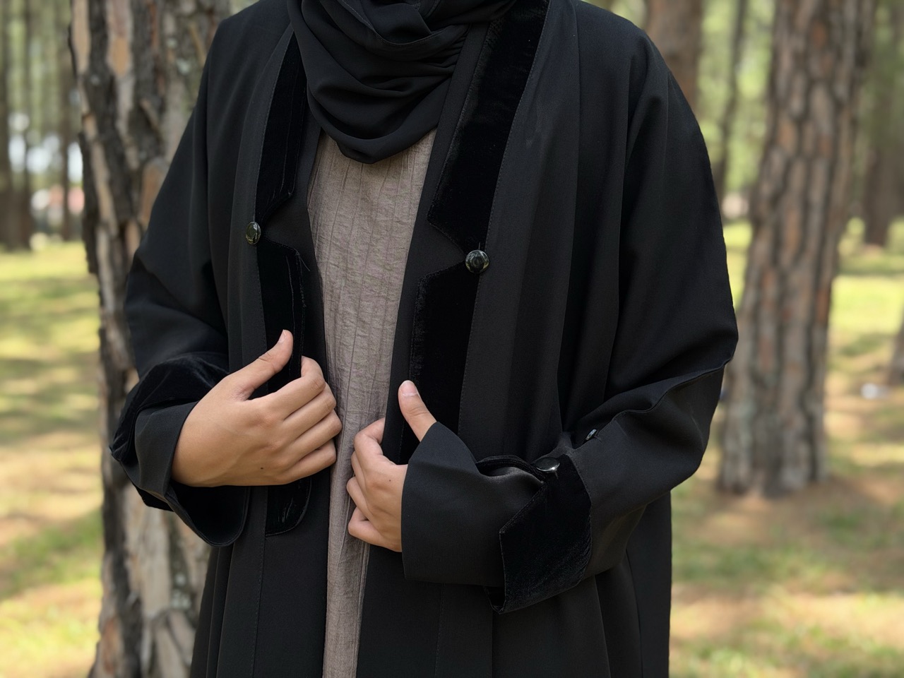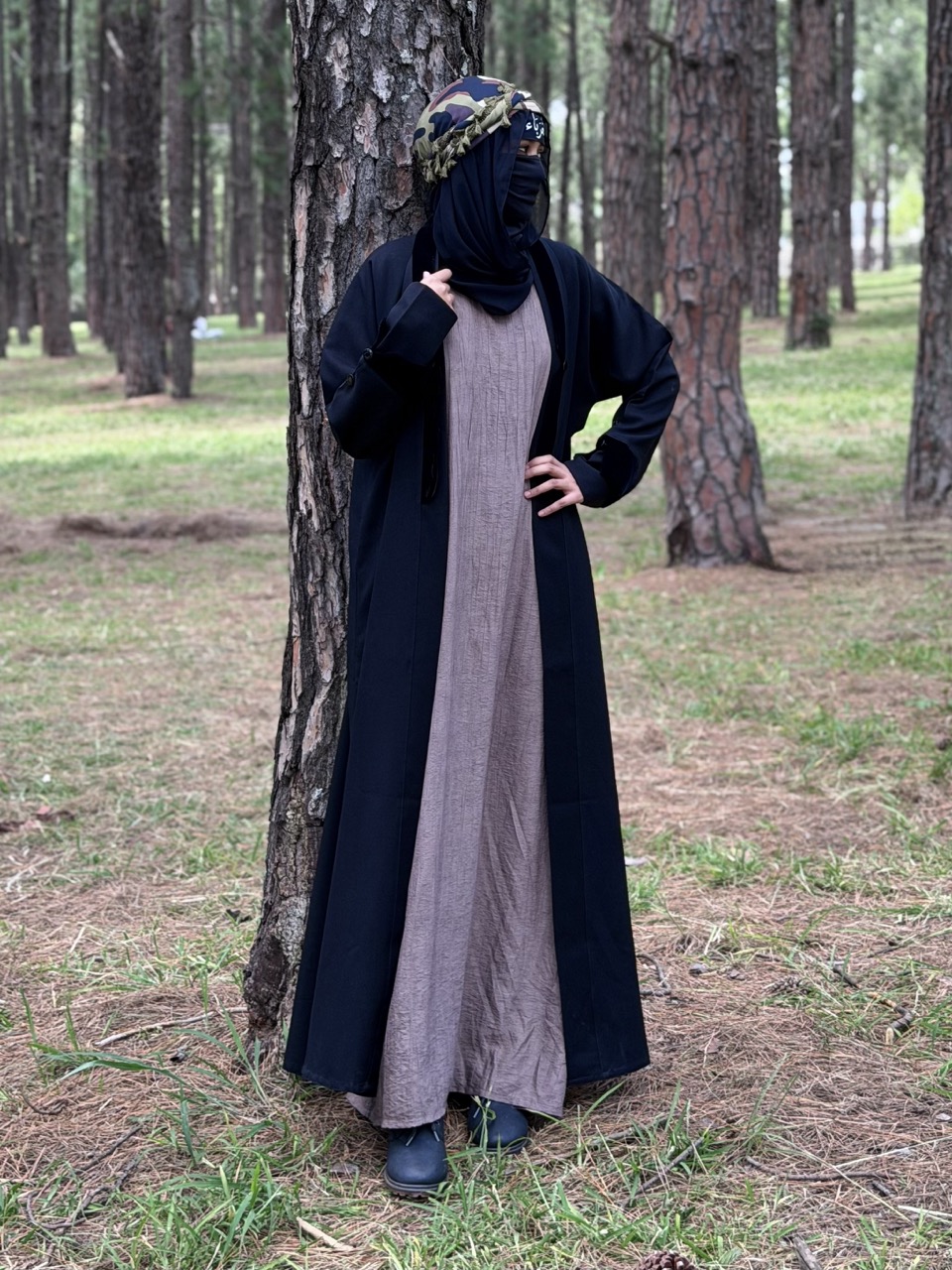 This piece embodies struggle — not of sword, but of soul. Designed with bold sleeves and commanding flow, Al-Mujāhidah symbolises the daily jihād of the believing woman: against ego, dunya, and hardship. Strength stitched into every seam [Capped-sleeve inner piece available at R550*]