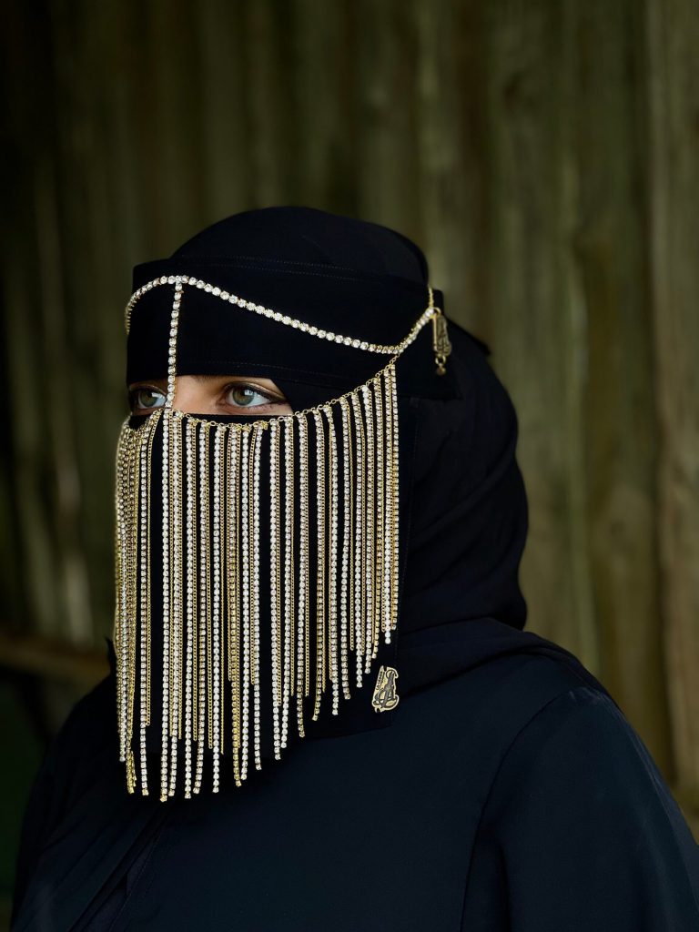 N I Q A B This style features a little eye string and has no elastic. However, this niqab has a double layer which covers the eyes for more coverage and modesty or when flipped back, the additional layer adds a sense of oomph.
