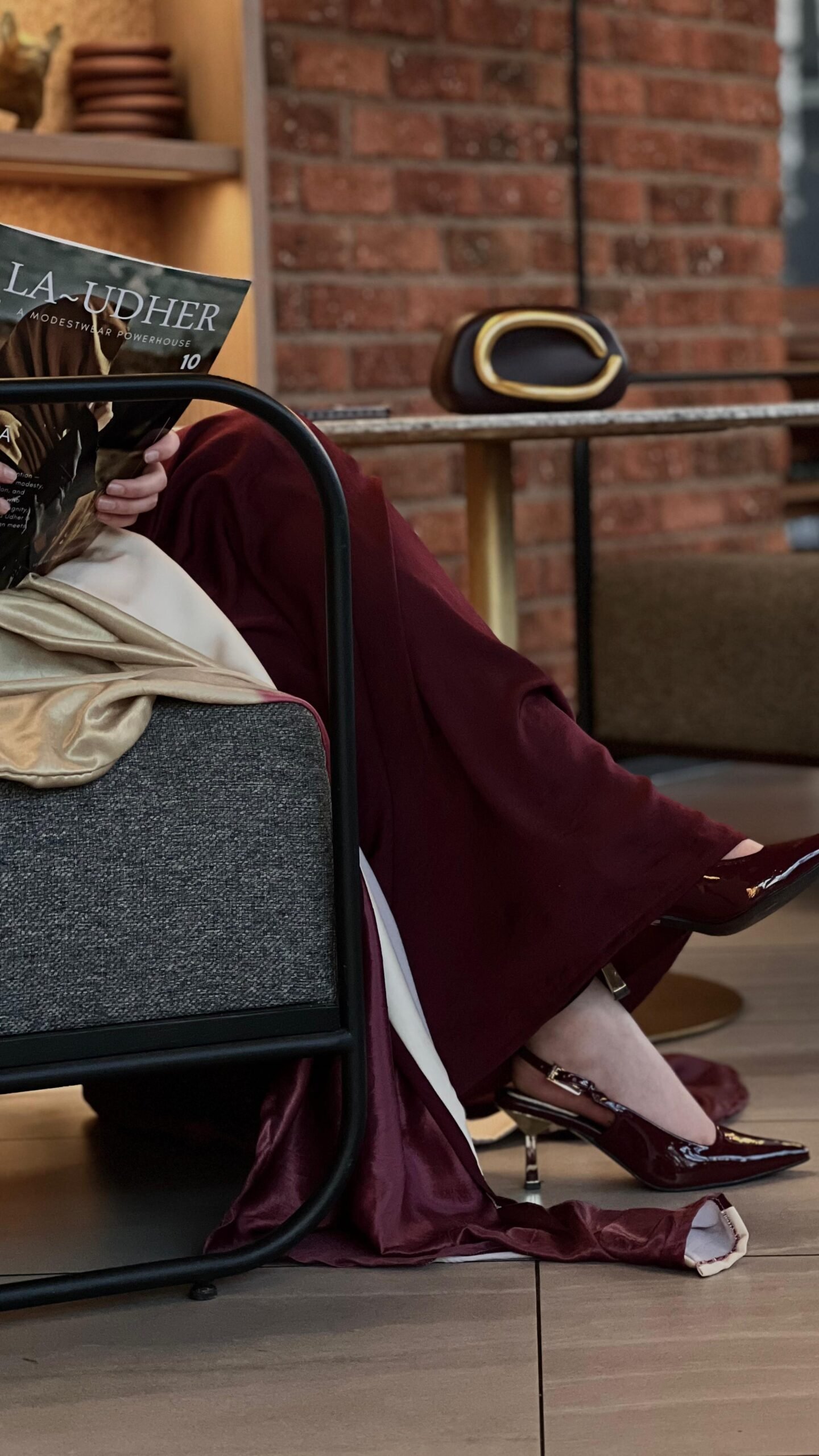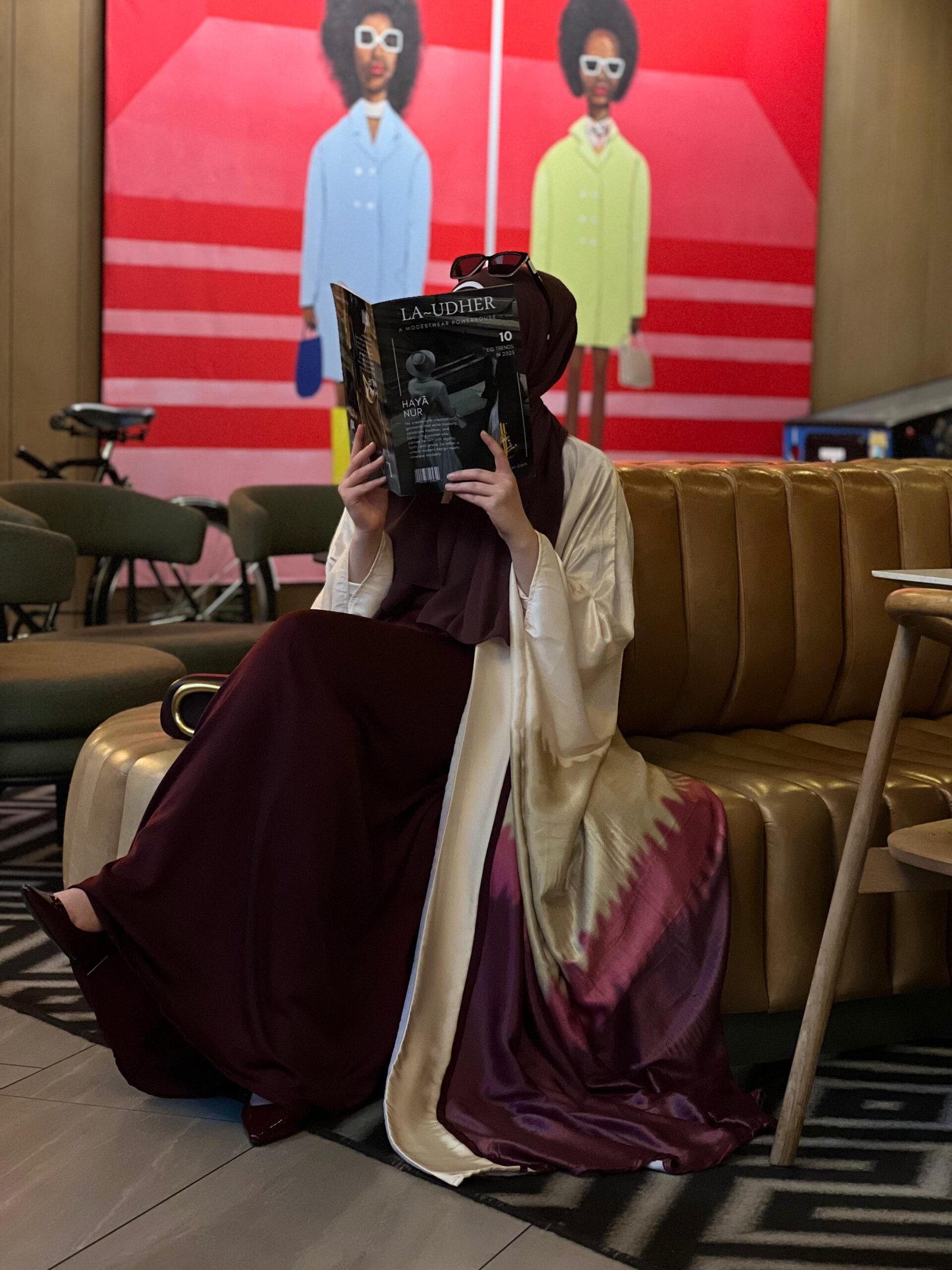 A kaftan that flows with ease — deep burgundy softened by ivory and a blush ombré detail. Gentle yet powerful, it