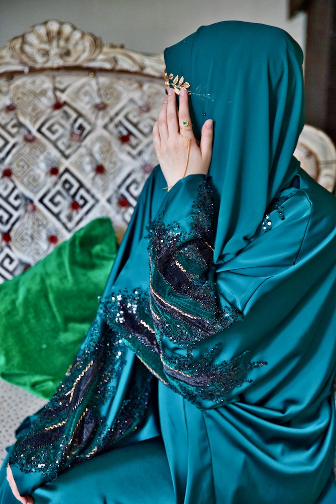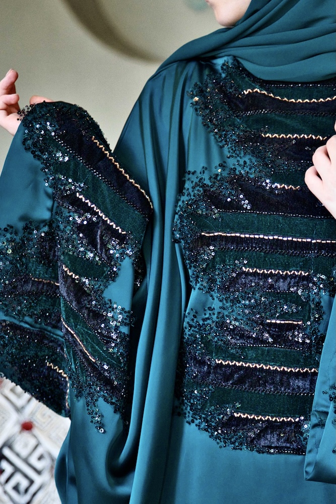 Malika embodies sovereign strength — the kind rooted in wisdom and calm command. The deep emerald tone reflects prosperity and divine favour, echoing the power that follows patience. This piece moves with assurance, carrying victory in its silence. (N.B. accessories & scarf available for purchase separately)