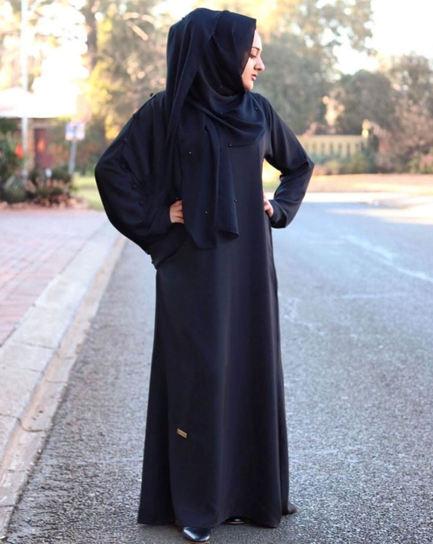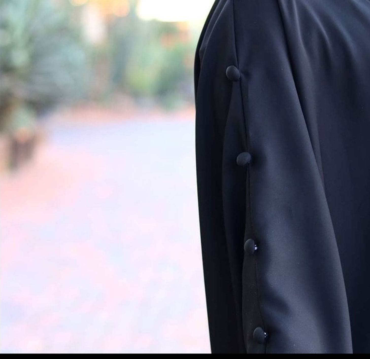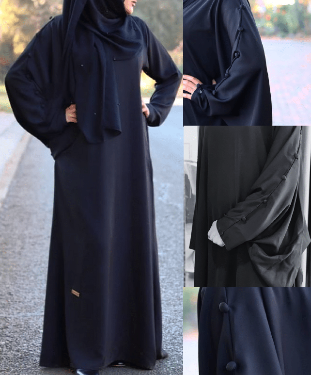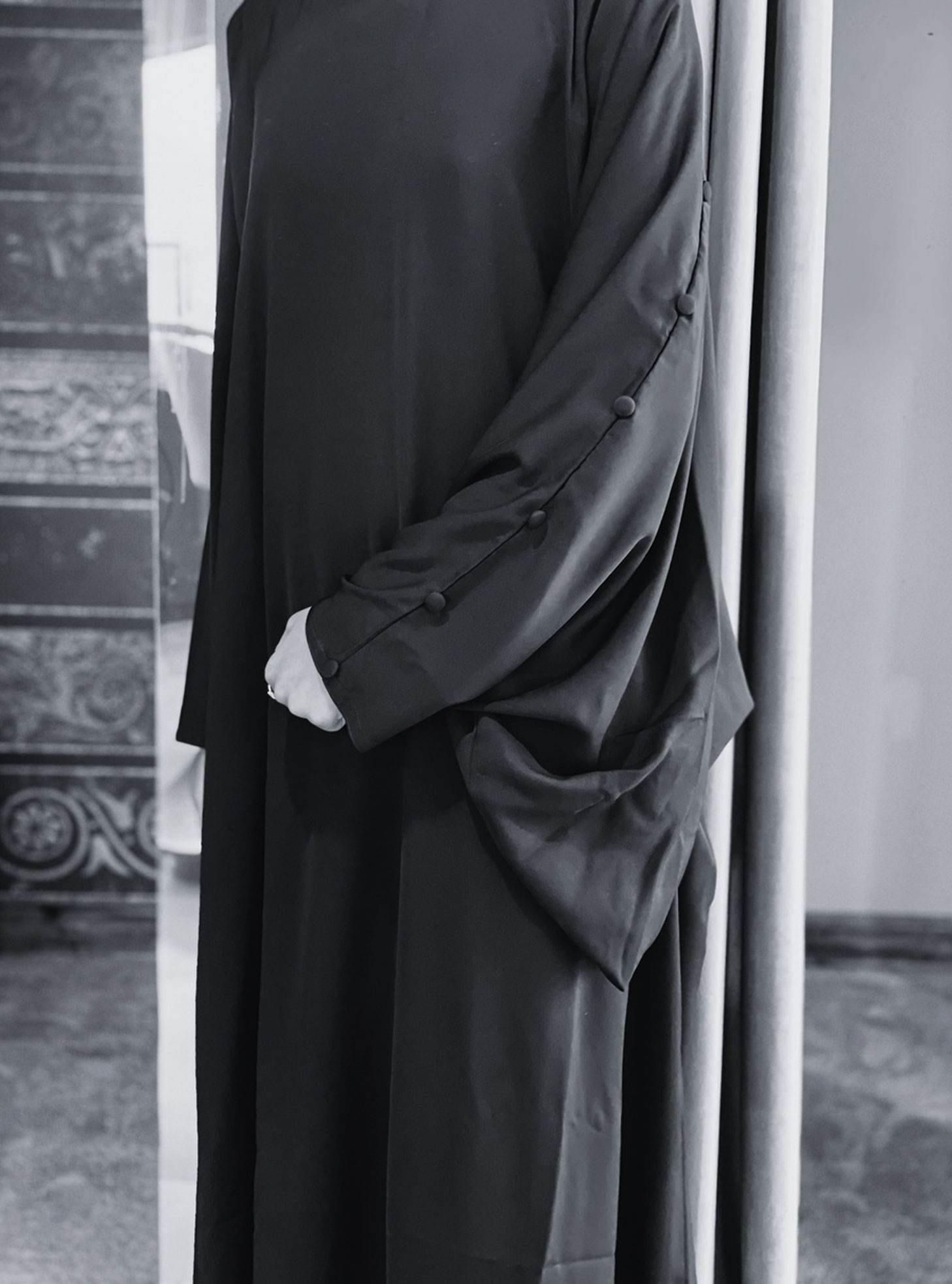 With a 1 sided batwing sleeves , adorned with covered button details , the Safaa Abaya, a modest and comfortable nida abaya to add to your wardrobe.