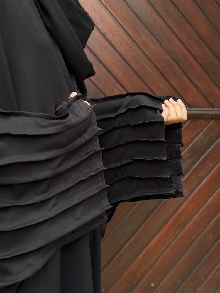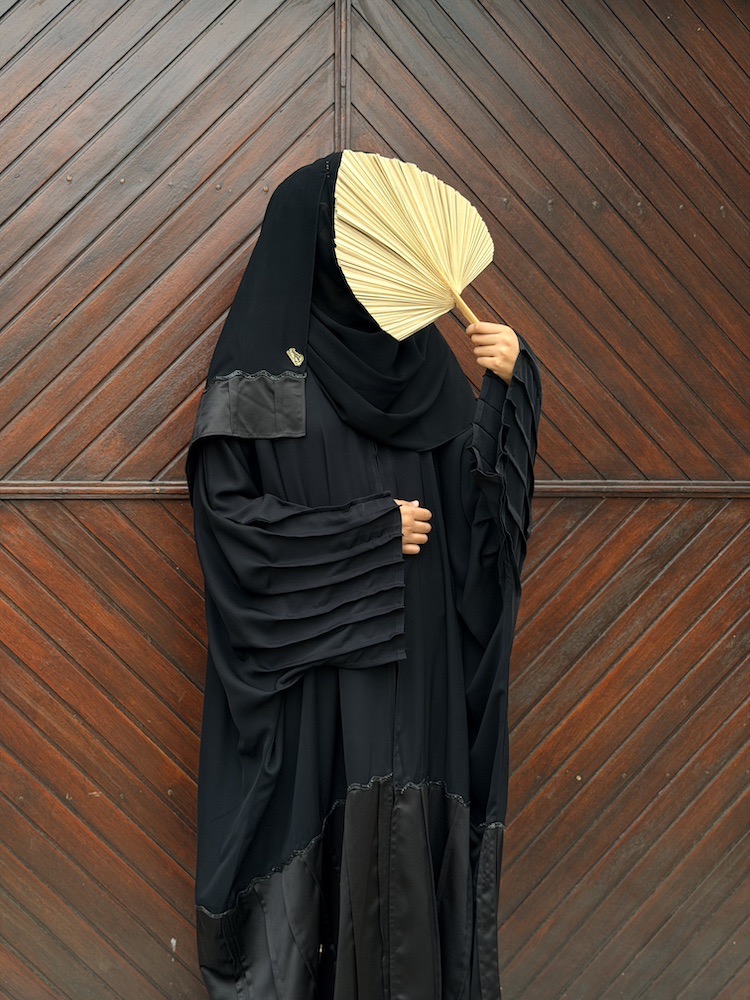 A front-open piece adorned with subtle stitched buttons, designed to reflect calm, balance, and composure.