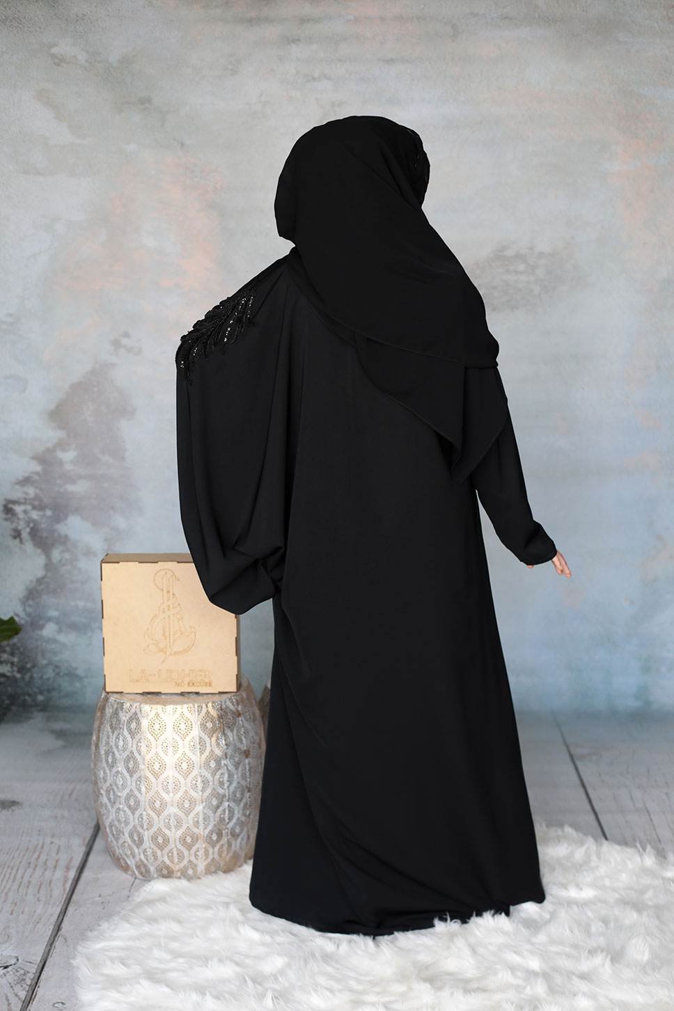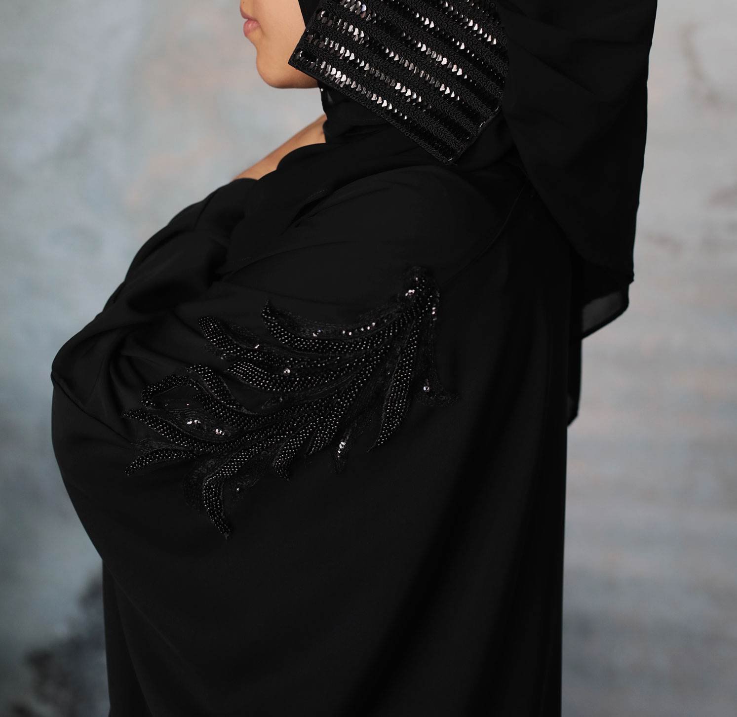 Exquisite in its course, the Shahla Abaya offers a charming appearance, draped with class.