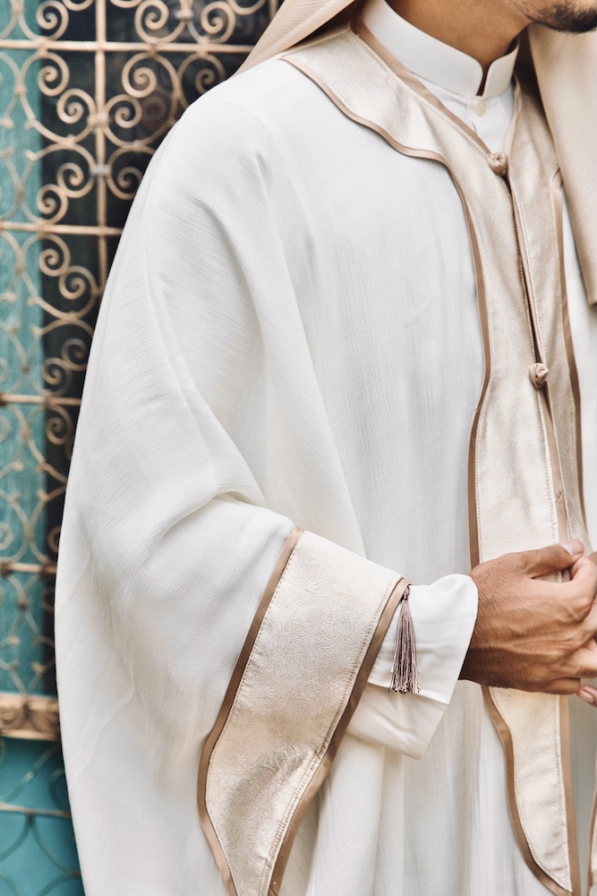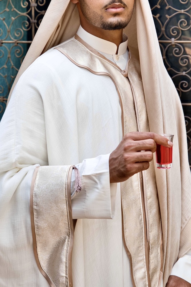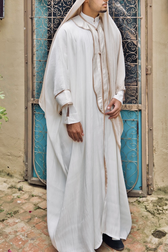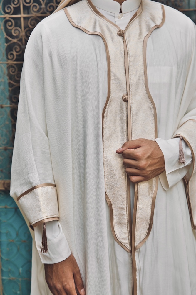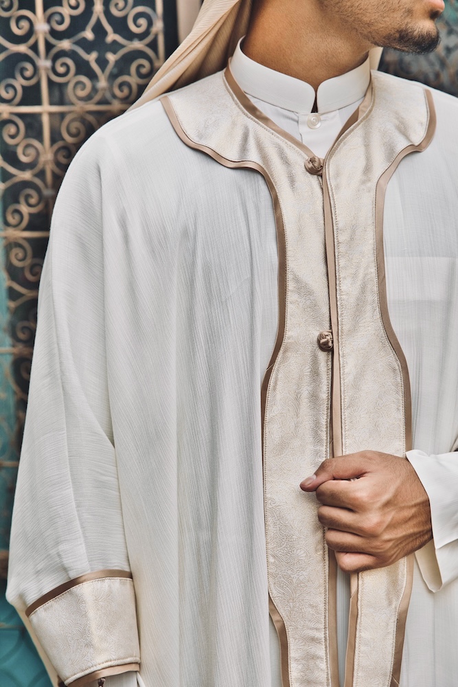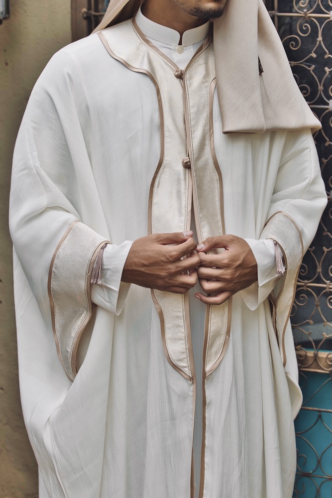 Taj represents the moment of Al-Fatah — when dignity is crowned after restraint. Crafted in commanding ivory with gold accents, this piece symbolises authority earned through composure. It is power that does not announce itself, yet is unmistakably recognised. (N.B. accessories & inner kurta available for purchase separately)