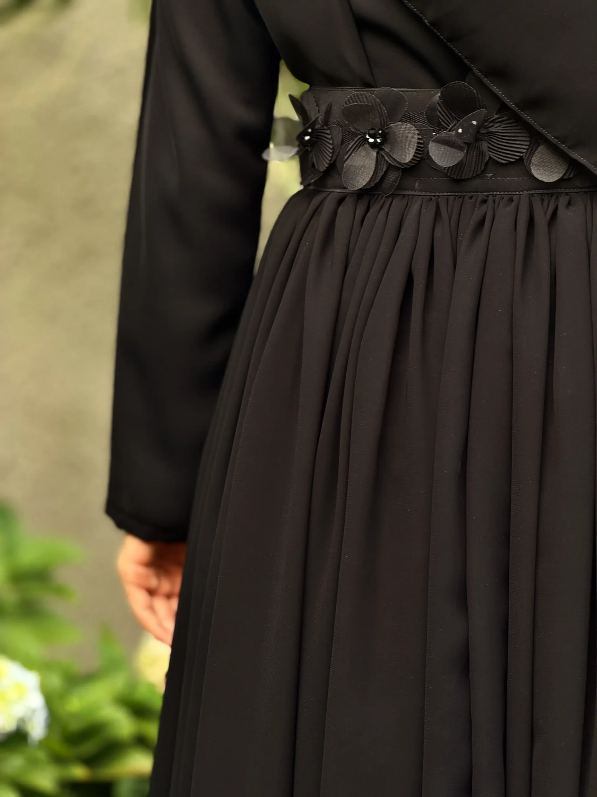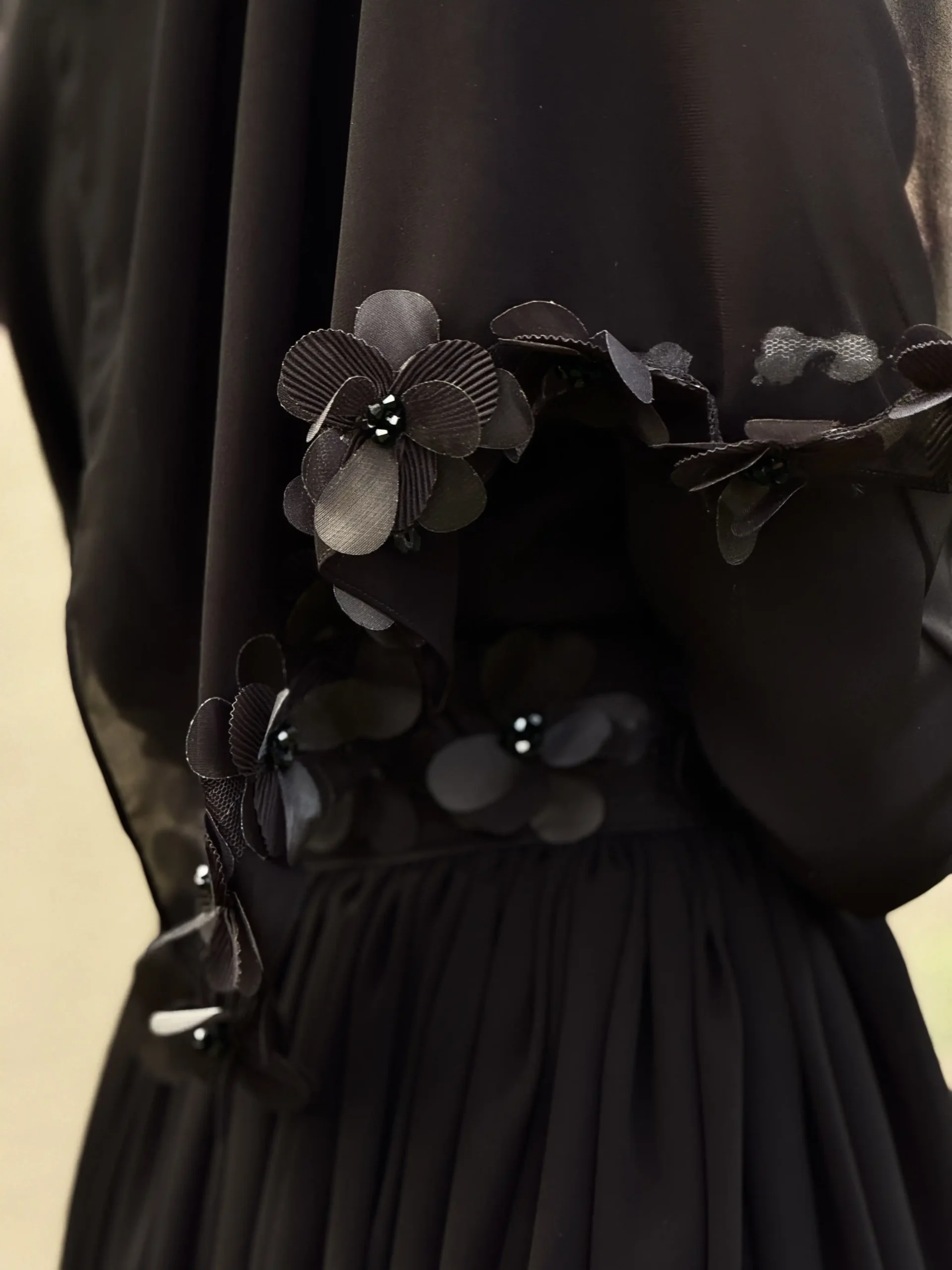 Made to custom fit & size. Elegant jasmine-inspired embroidery trails along a detachable skirt, offering a timeless, fragrant softness translated into thread and design.